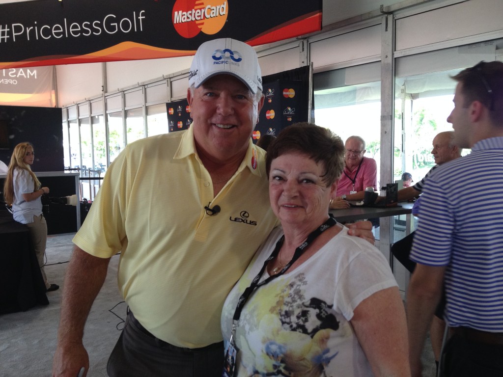 After the photo-op with Mark O’Meara, I lined up for the more formal photo with both O’Meara and Curtis Strange. Then, with the Curtis-Strange-paid-for Arnold Palmer drink bottle in hand, I walked over to meet up with the lady whose picture I took. Her name was Heather and she was sitting with her husband, John, and their two other friends, Dave and Donna. They told me they were visiting from Canada and regularly travel as a group, having been to the Arnold Palmer Invitational before. I would not have spent much time with them except for what happened when I asked Heather and John how I should send them the image of Heather with Mark O’Meara. In typing John’s email address into my phone, a message popped up from my wife with the best text I have ever received. Right then, my already blissful mood skyrocketed into the stratosphere.